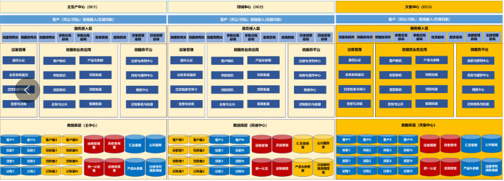 第二、两地三中心高可用方案。金融行业核心系统架构升级方案中的两地三中心高可用方案,在同城双活基础上,建设第三站点灾备中心,首先保障数据灾备,也可承载分离查询等部分业务。