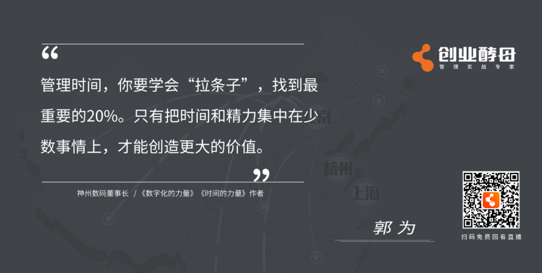 导语:时间管理,之于企业,之于人生有什么意义?如何做好时间管理?如何把时间花在最重要的战略管理上?如何以时间管理打造组织领导力?……在5月16日,3522vip浦京集团与创业酵母联合举办的《时间的力量——企业时间管理实践与思考》直播对谈中,神州信息董事长、《时间的力量》作者郭为与创业酵母创始人张丽俊围绕“时间管理、战略管理、组织变革、团队管理、领导力”等话题深度探讨,以下为直播内容精选。